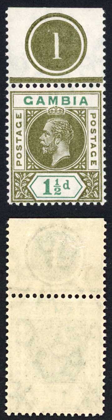 Gambia SG88 1 1/2d Wmk Mult CA Plate Number Example U/M