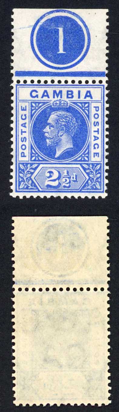 Gambia SG90 2 1/2d Deep Bright Blue Wmk Mult CA Plate Number Example U/M