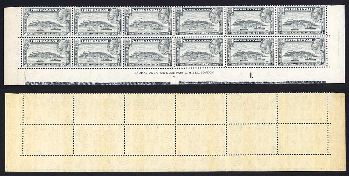 Gibraltar SG112 2d Rock Perf 14 U/M Bottom 2 rows inc Plate number Cat 168 pound