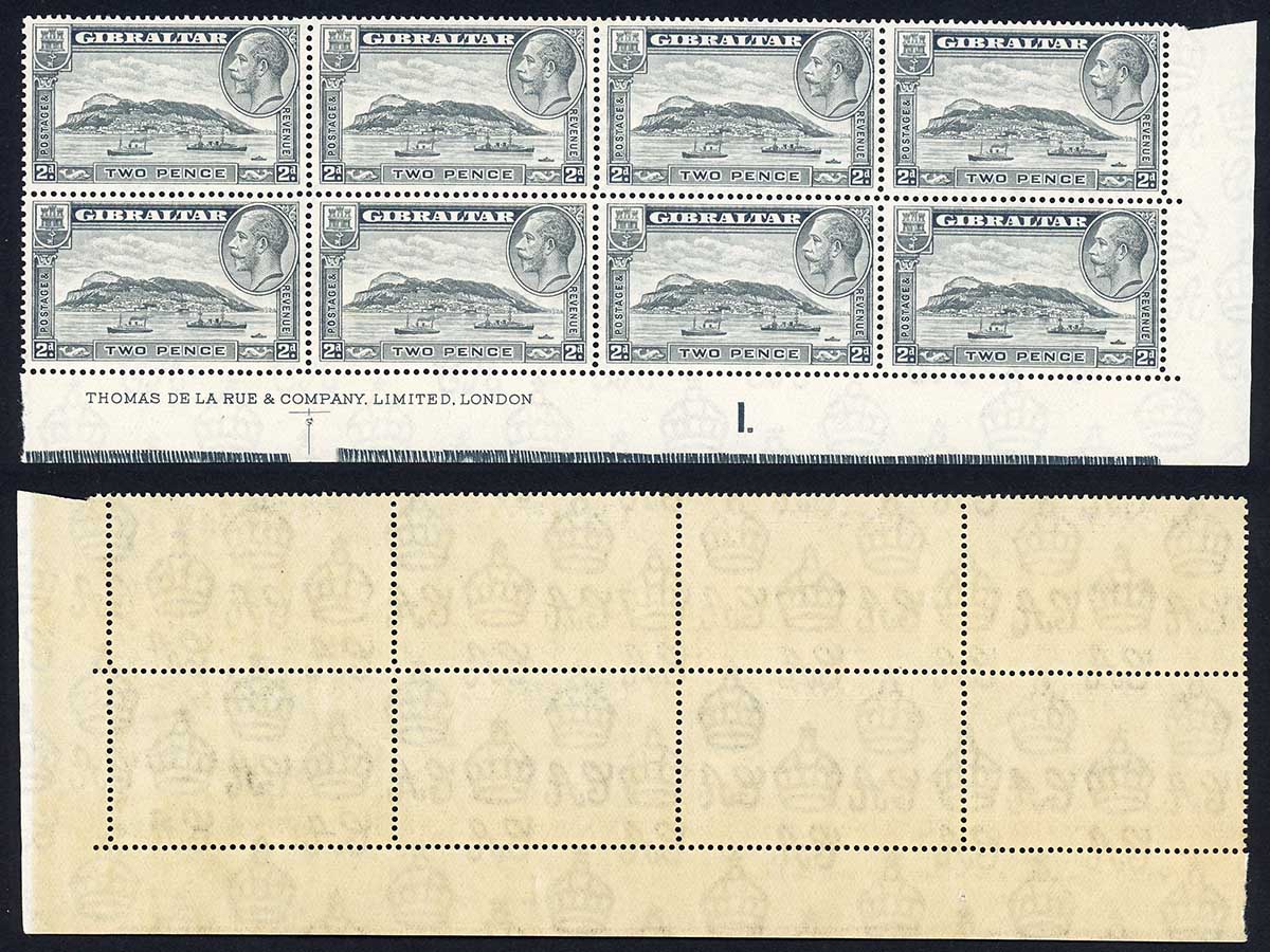 Gibraltar SG112 2d Rock Perf 14 U/M Plate Block of 8 Cat 112 pounds