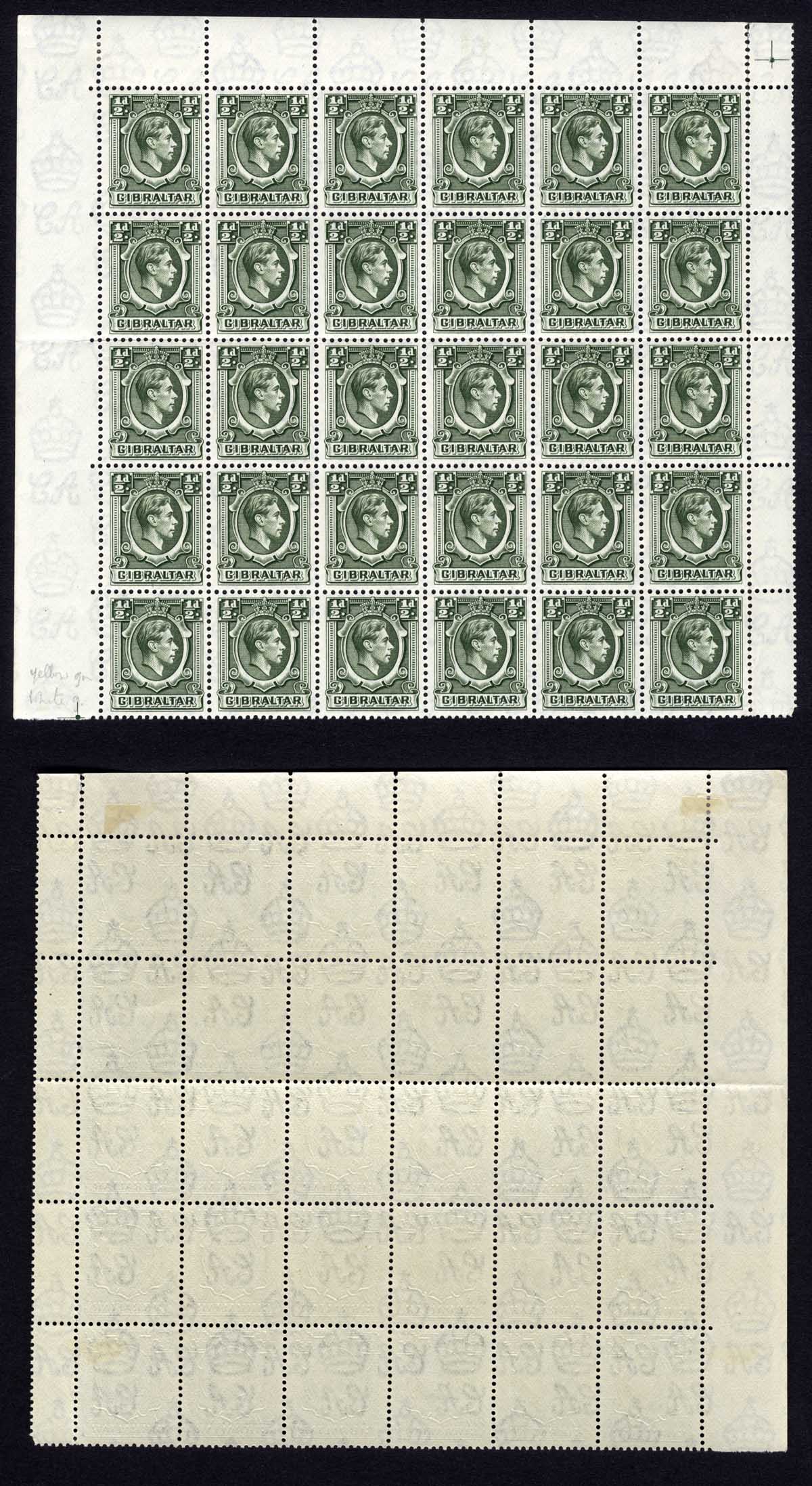 Gibraltar SG121 1/2d Deep Green Block of 30 U/M (mounted in the margin)