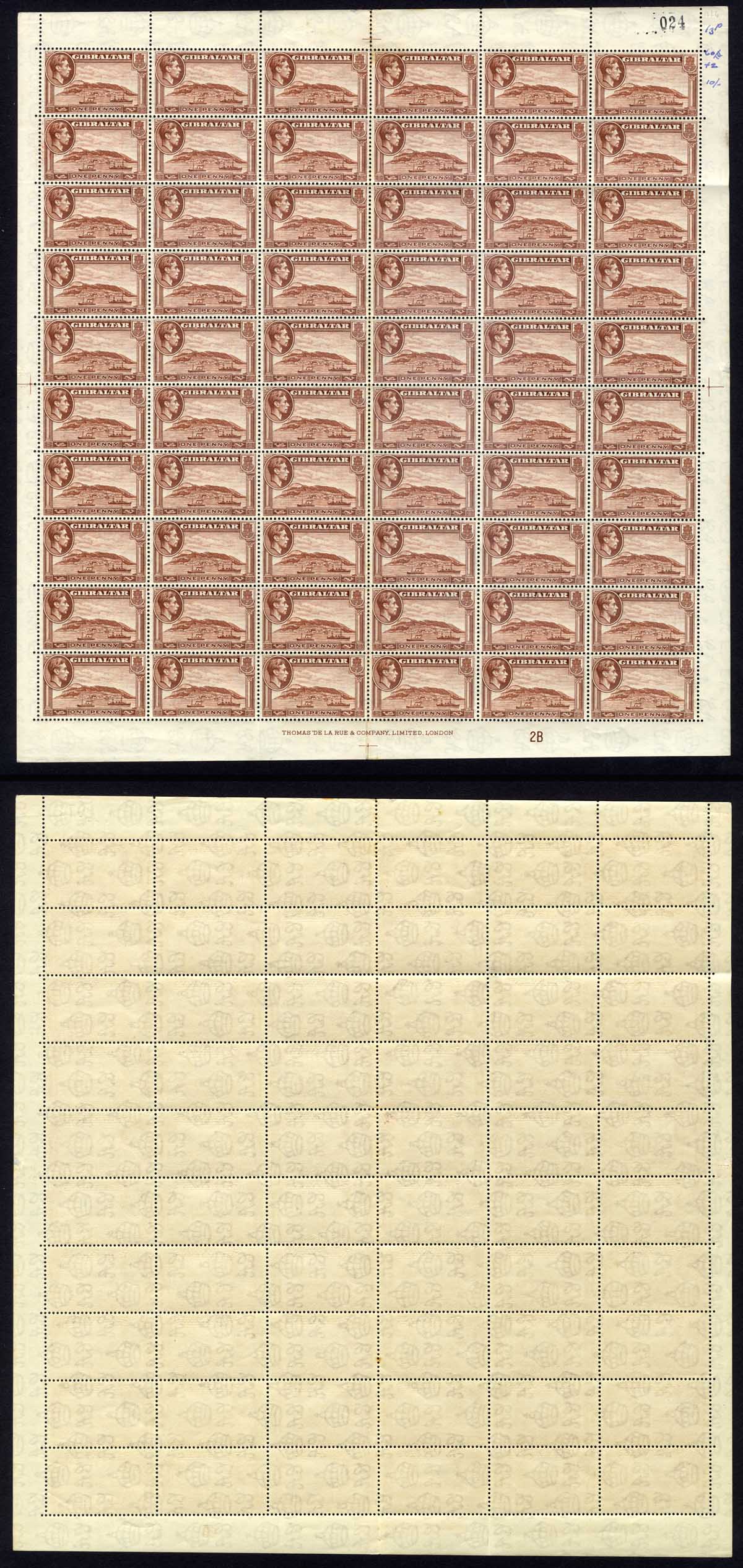 Gibraltar SG122c 1d Deep Red-brown Perf 13 Wmk Sideways Pane of 60 U/M Cat 195 pounds