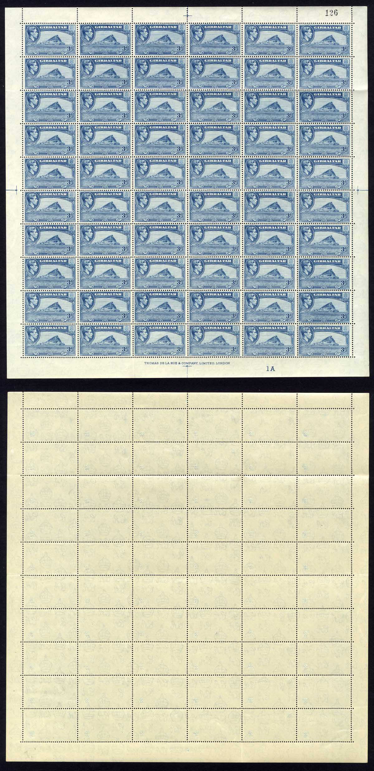 Gibraltar SG125b 3d Perf 13 Pane of 60 U/M Cat 270 pounds