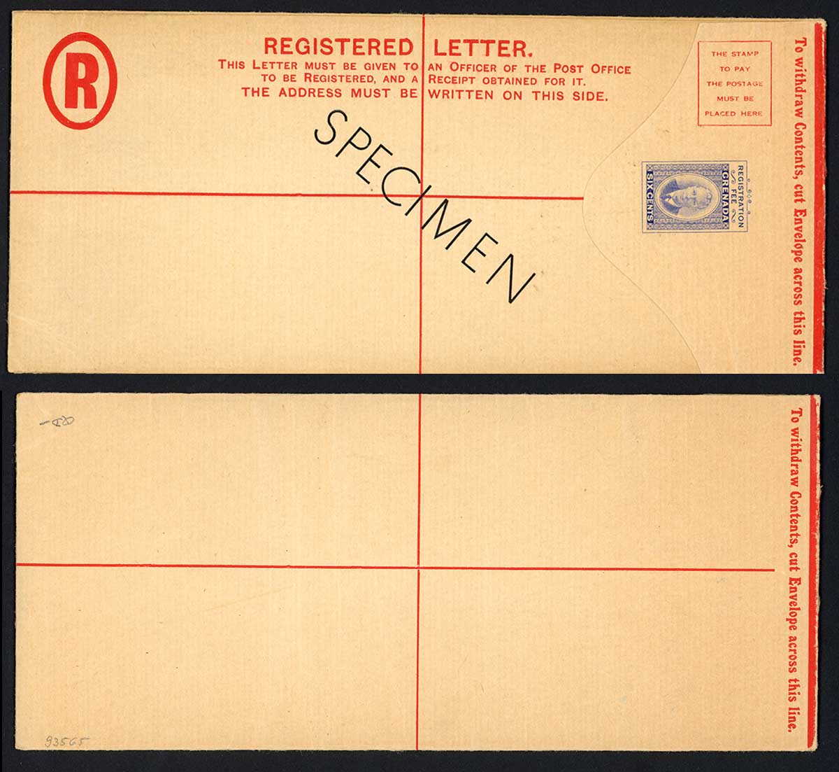 Grenada HG11a KGVI 6d registered envelope opt Specimen