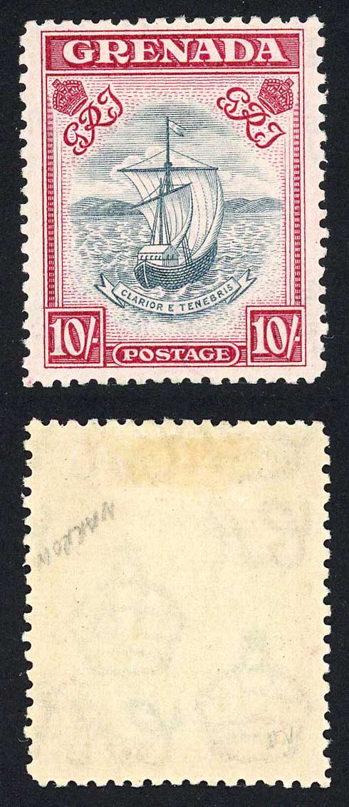 Grenada SG163c 10/- Slate blue and bright carmine Perf 12 M/M Cat 750 pounds