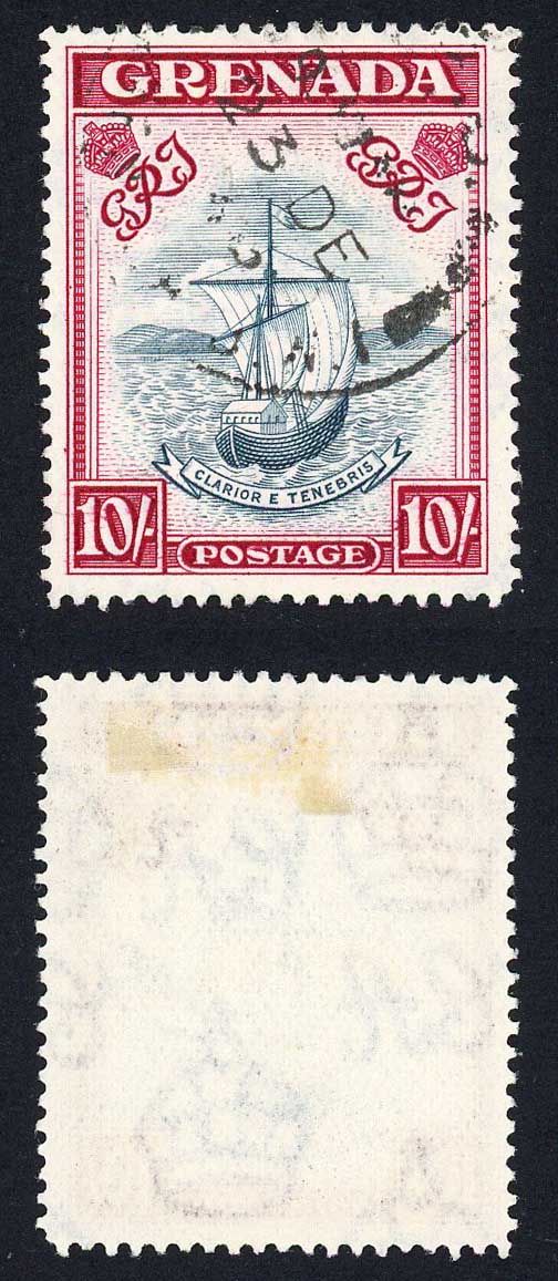 Grenada SG163f 10/- Blue-black and Bright Carmine CDS Cat 50 pounds