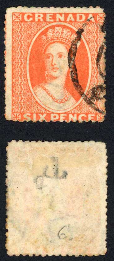 Grenada SG17 6d Deep Vermilion Wmk Small Star sideways Cat 45 pounds