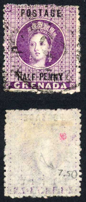 Grenada SG21 1/2d Deep Mauve Wmk Large Star sideways used Cat 7 pounds