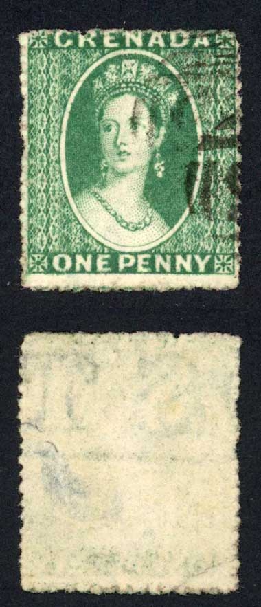 Grenada SG4 1d Green Wmk Star Fine used Cat 17 pounds