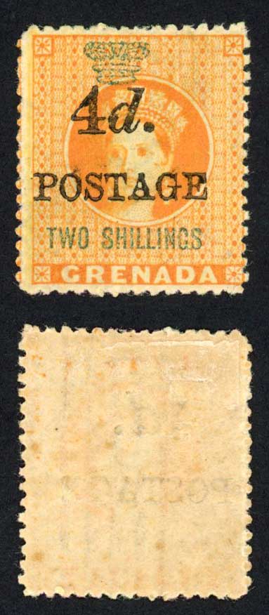 Grenada SG41 4d on 2/- (4mm) M/M Cat 50 pounds