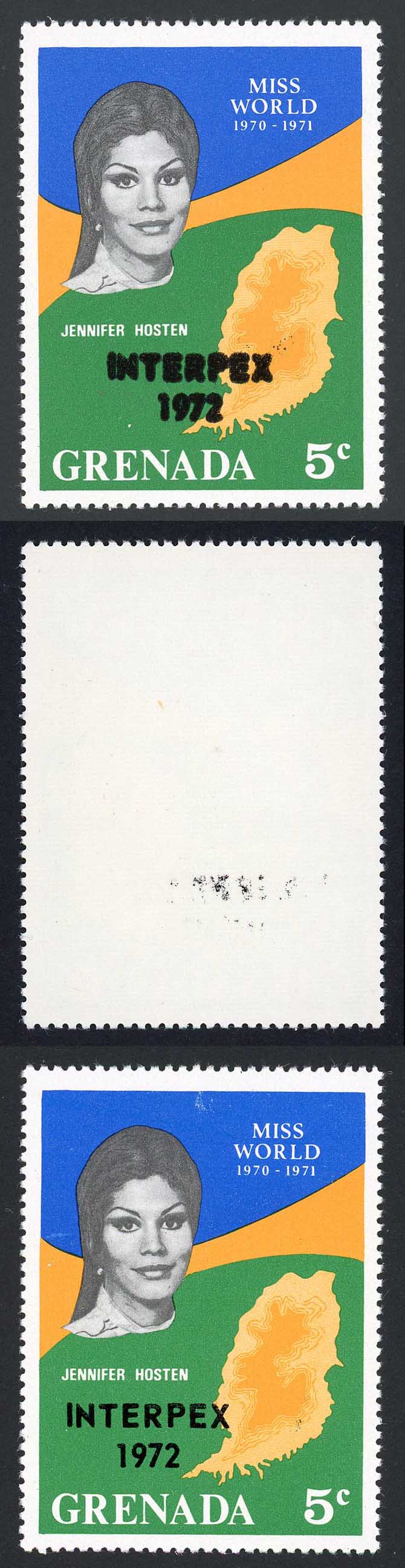 Grenada SG490 5c opt INTERPEX 1972 Double Surcharge U/M