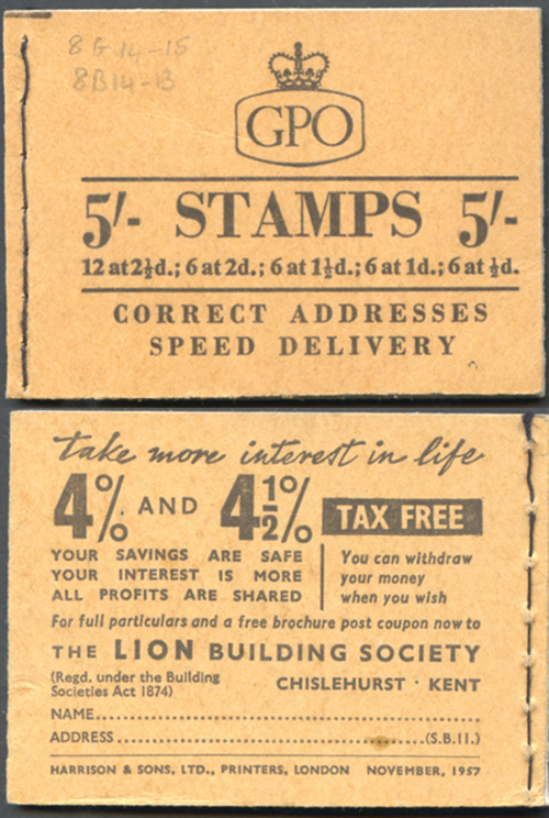 H31 5/- Booklet Wmk Edwards with 2d Light Red-brown Pane November 1957