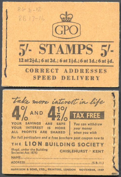 H31 5/- Booklet Wmk Edwards with 2d Light Red-brown Pane November 1957