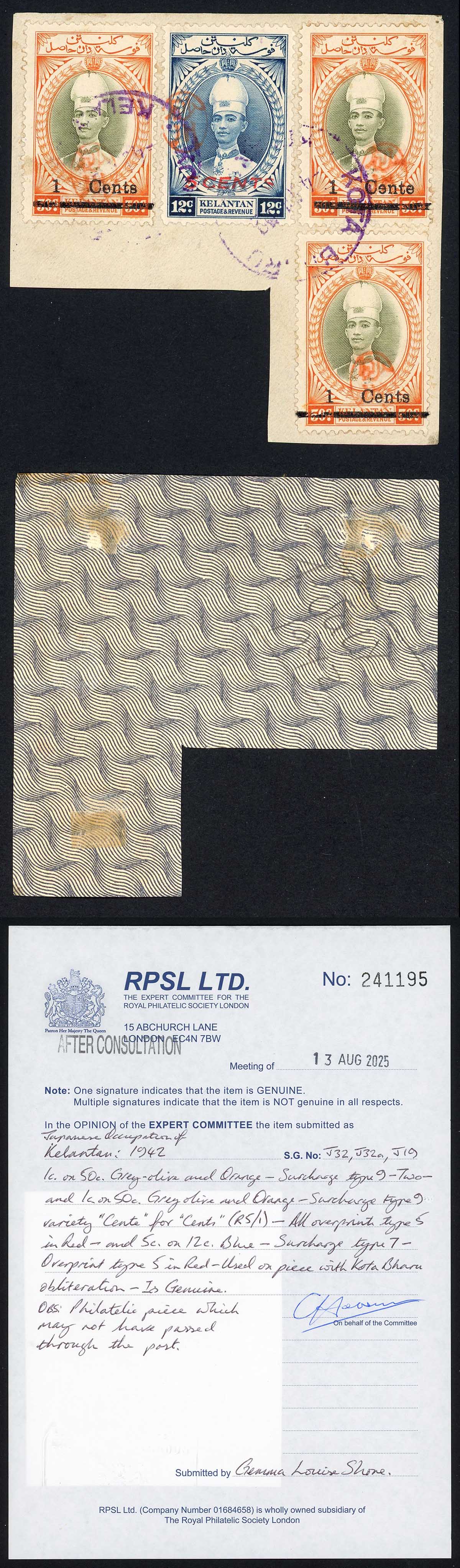 Japanese Occ of Kelantan SGJ32a 1c on 50c ERROR Cente for Cents (R5/1)