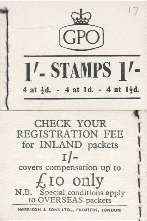 K3 1/- Booklet Wmk Crowns Back Cover 10 pound only. Overseas letter rate 6d