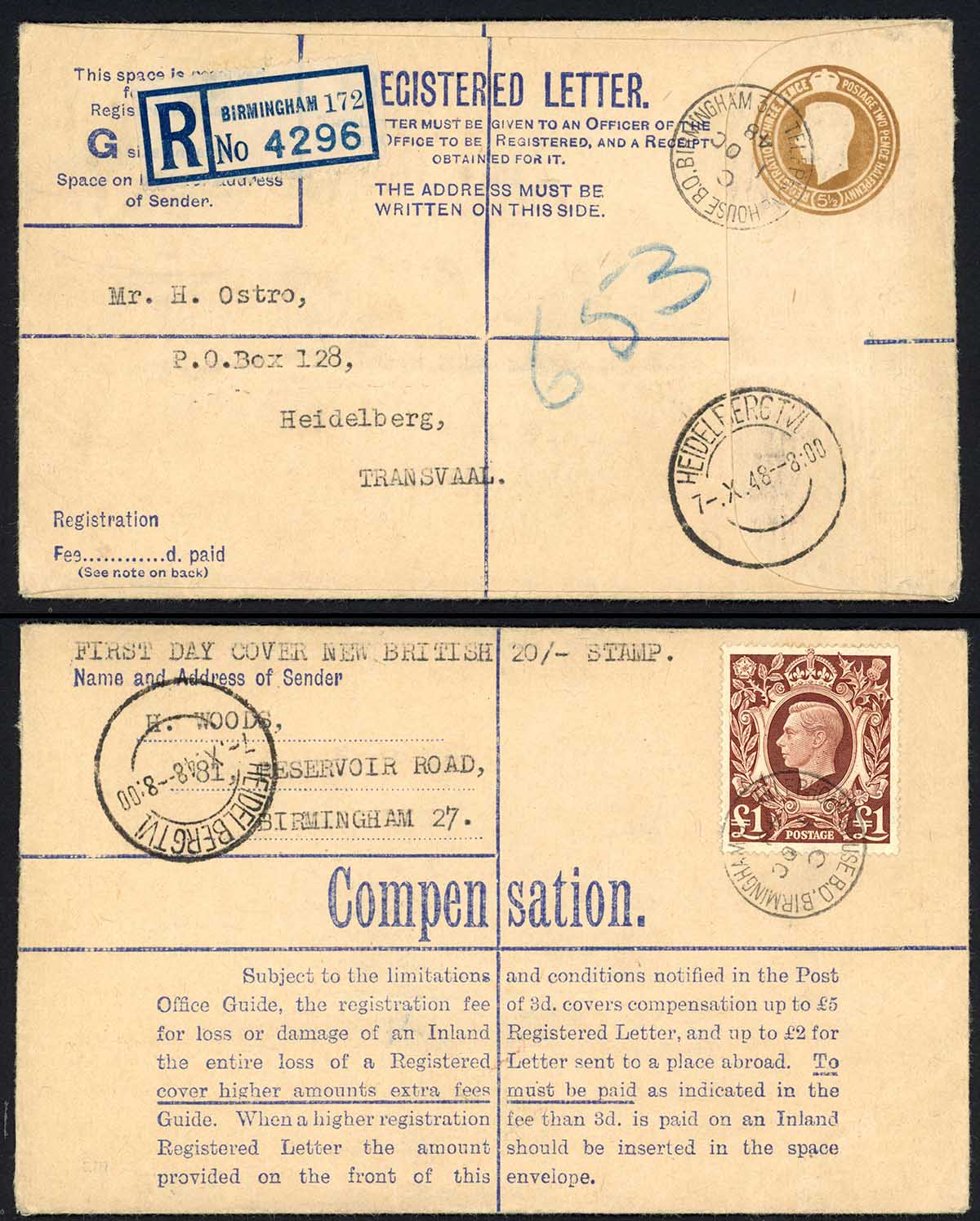You're viewing: KGVI ONE POUND on 5 1/2d Registered Envelope 1 Oct 1948 FIRST DAY COVER£165.75Original price was: £165.75.£152.49Current price is: £152.49.