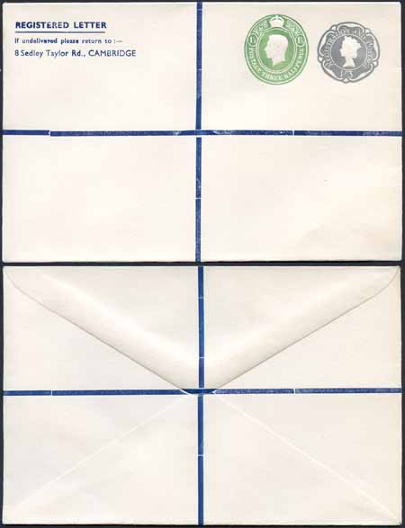 KGVI and QEII 1 1/2d and 1/3 Compound PRIVATE Registered Envelopes RSP9 Size N