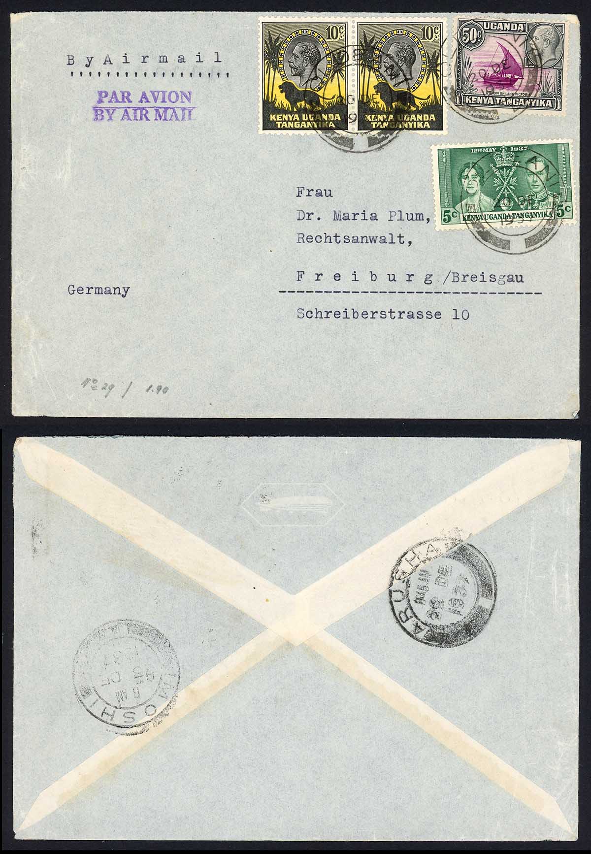 KUT 1937 KGV and KGVI values to 50c on an airmail cover to Germany