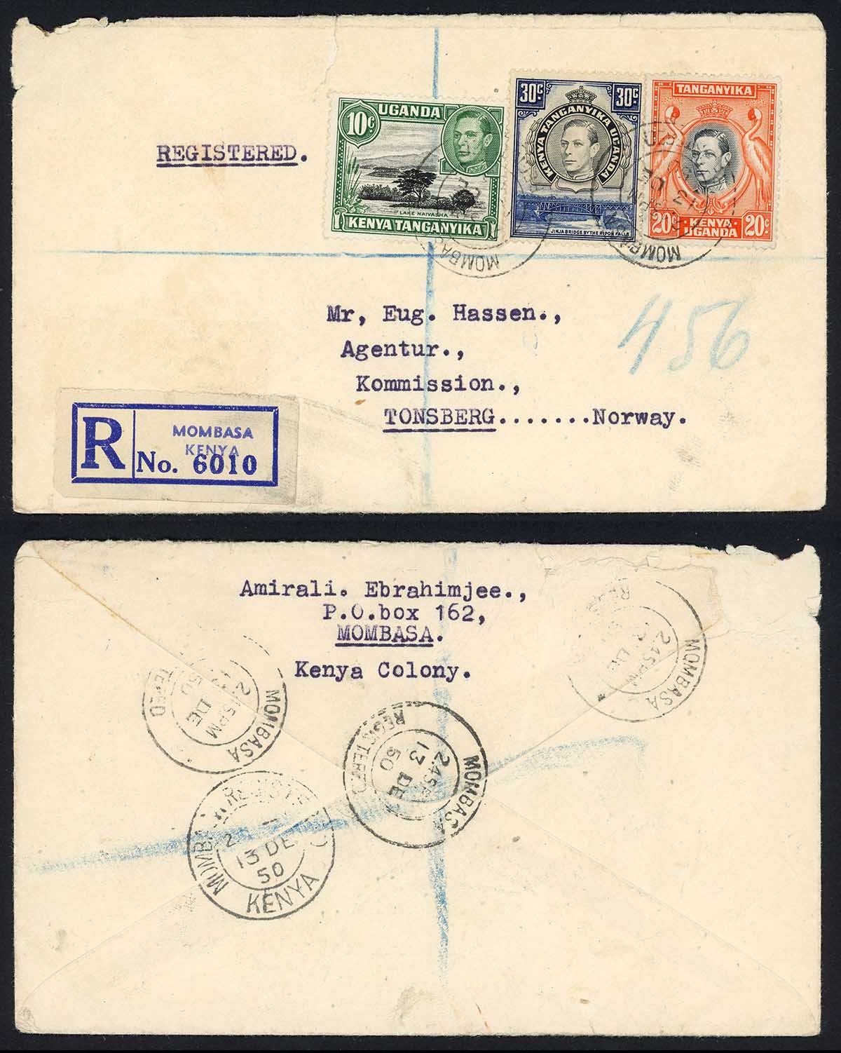 KUT KGV mixed values on registered cover to Norway