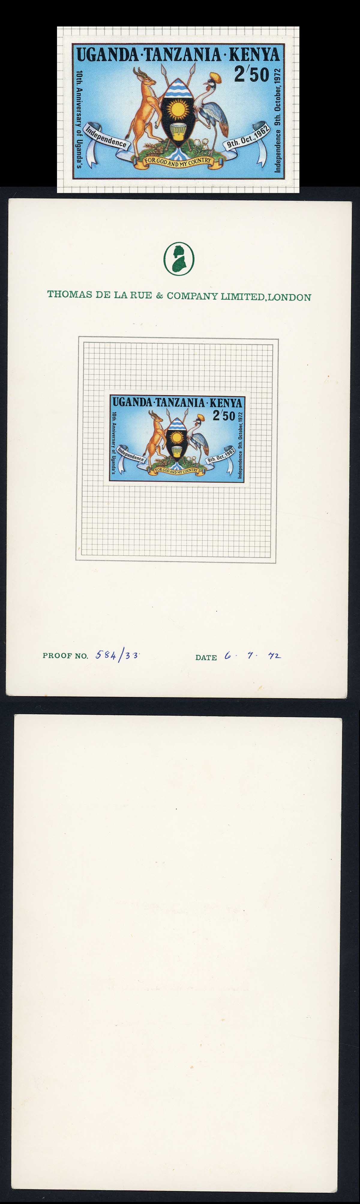 KUT SG346 1973 2/50 Independence Imperf Proof on a DLR Card
