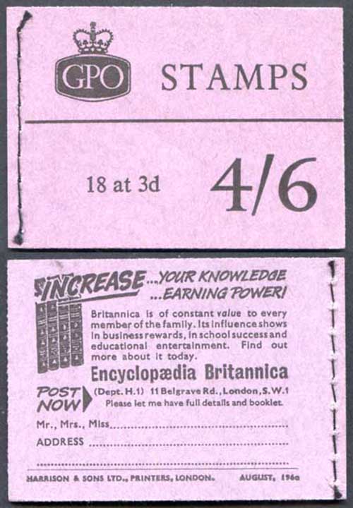 L21p 4/6 Booklet Wmk Crowns with Green Phosphor Bands August 1960