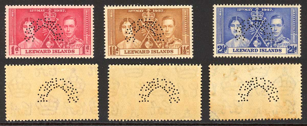 Leeward Is SG92s/4s Coronation Set PERF SPECIMEN 2 1/2d Corner added Cat 120