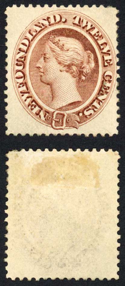 Newfoundland SG28 12c red-brown yellowish paper Mint Cat 650 pounds