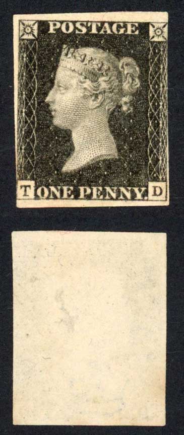 Penny Black (TD) Plate 8 Un-used example (no gum) Cat 10000