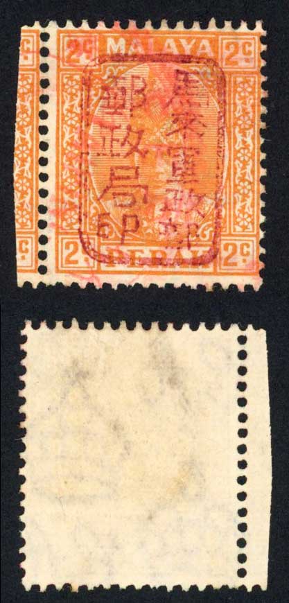 Perak Japanese Occ SGJ191b 2c Orange with Red Overprint used Cat 50 pounds
