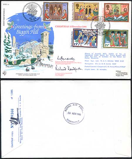 Greetings from Biggin Hill Christmas 18.11.1986 Signed by The reverand Eric Mantle MA RAF & The Reverand Richard Handforth MA Certifed Copy of 1500