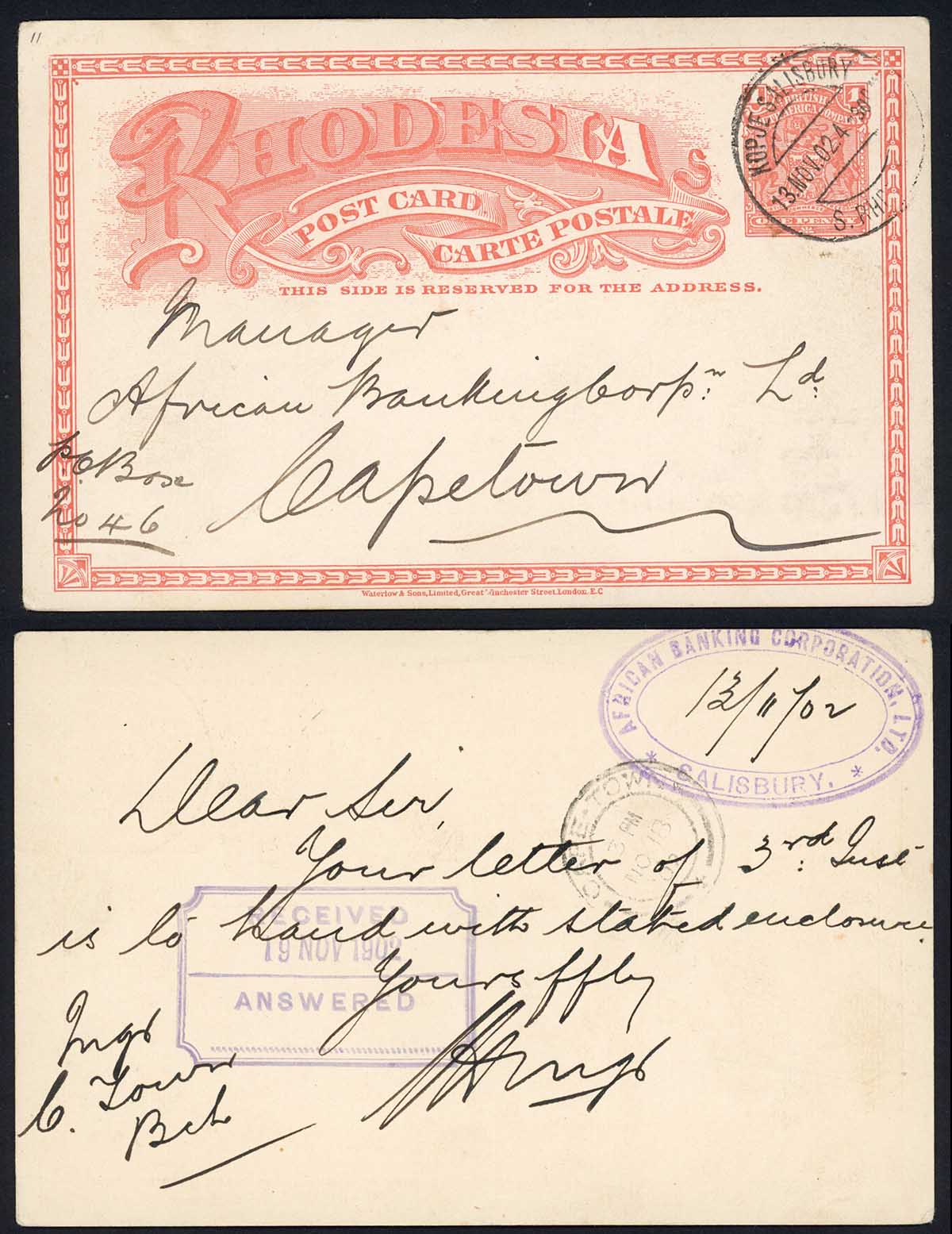 Rhodesia 1902 1d Stationery Card from Kopje Salisbury