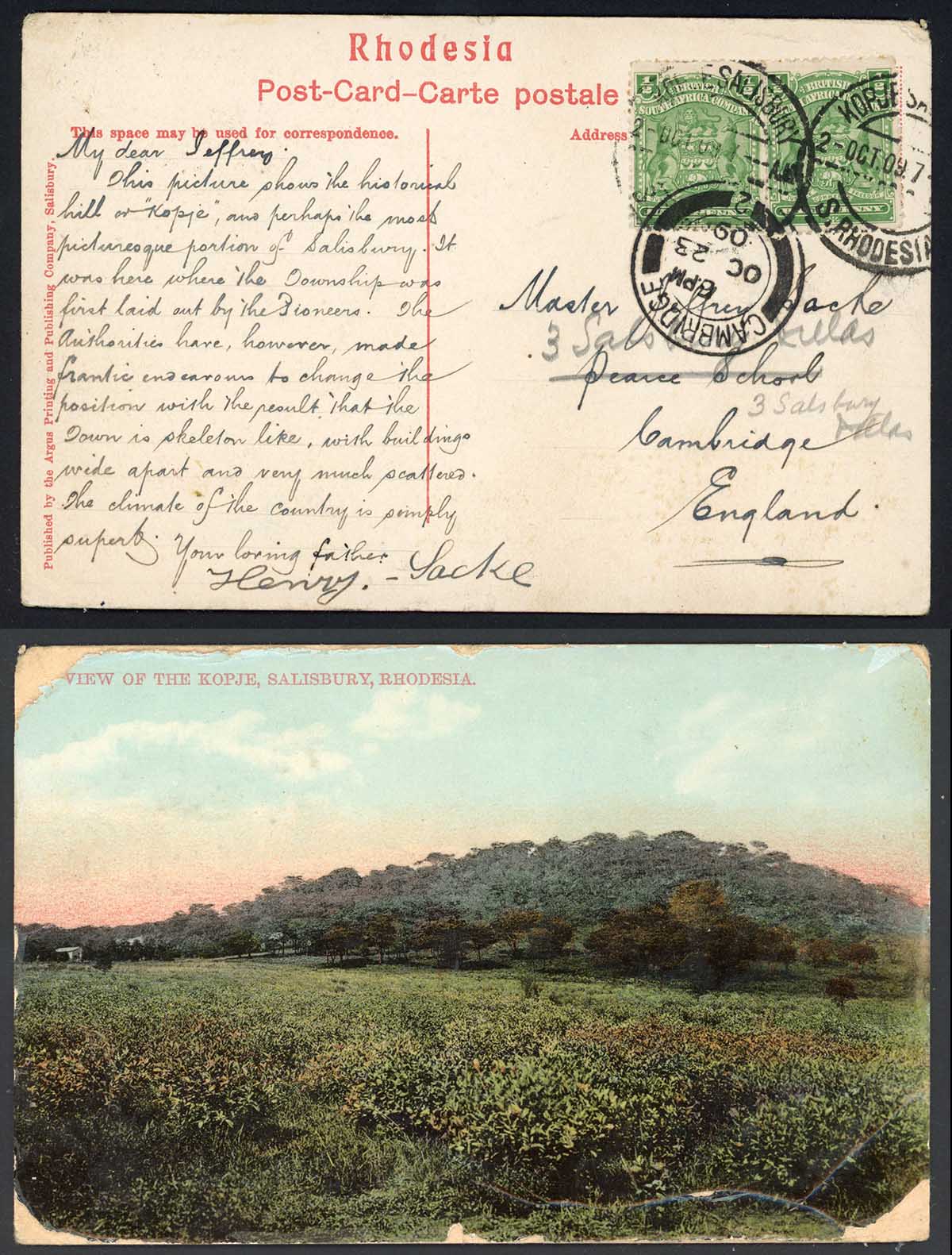 Rhodesia Picture Postcard uprated with 1/2d arms Pair