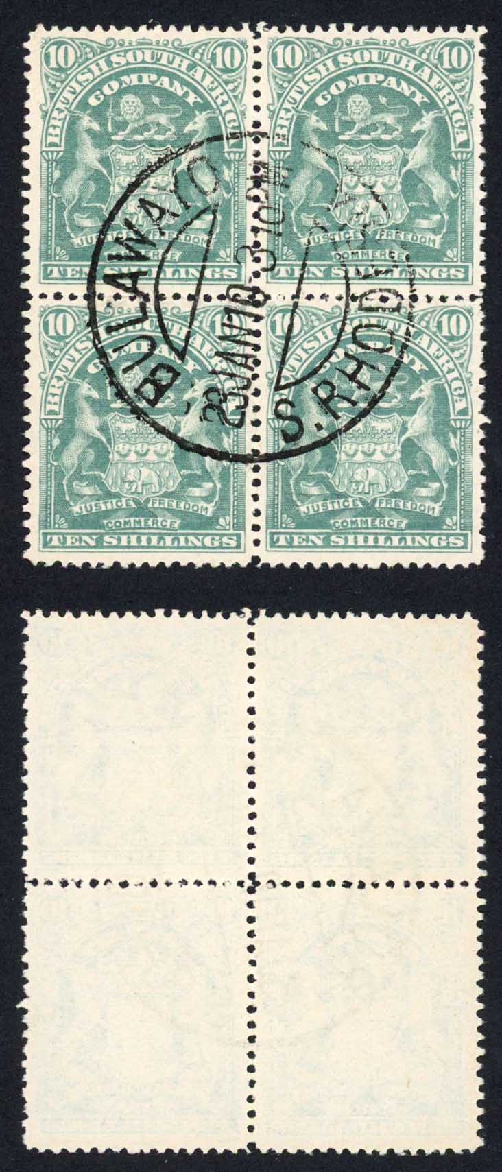 Rhodesia SG89 10/- grey-green Block of Four Cat 11++ pounds