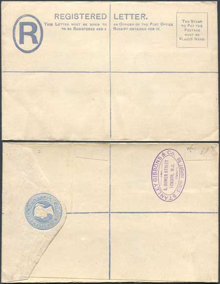 RP13 QV 2d Blue Registered Envelope Format RF6 Stamp R3 Size G Mint