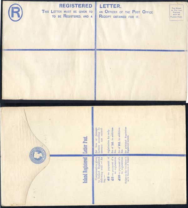RP14 QV 2d Blue Registered Envelope Size K Mint