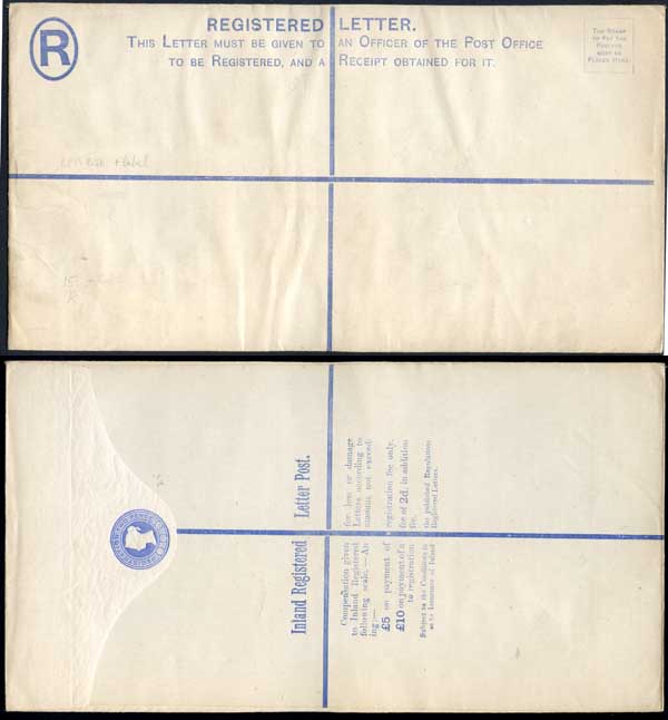 RP15 QV 2d Blue Registered Envelope Size K Mint