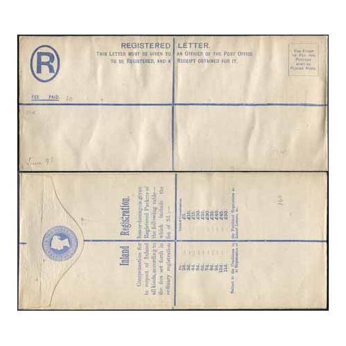 RP18 QV 2d Blue Registered Envelope 5 to 50 on back Size H2 MINT