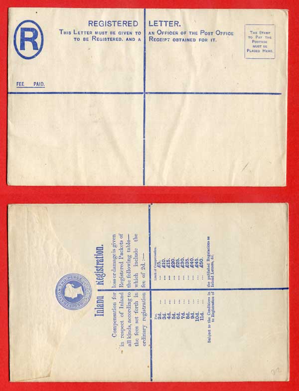 RP18 QV 2d Blue Registered Envelope Size H Mint