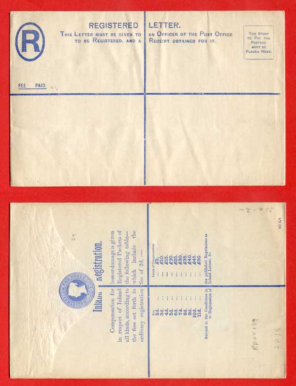 RP18 QV 2d Blue Registered Envelope Size H Mint