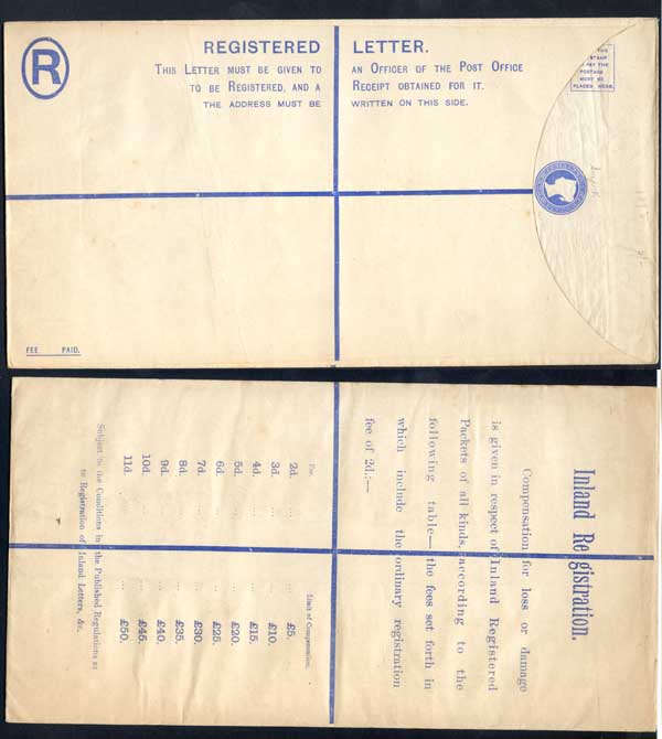 RP20 QV 2d Blue Registered Envelope size K Mint