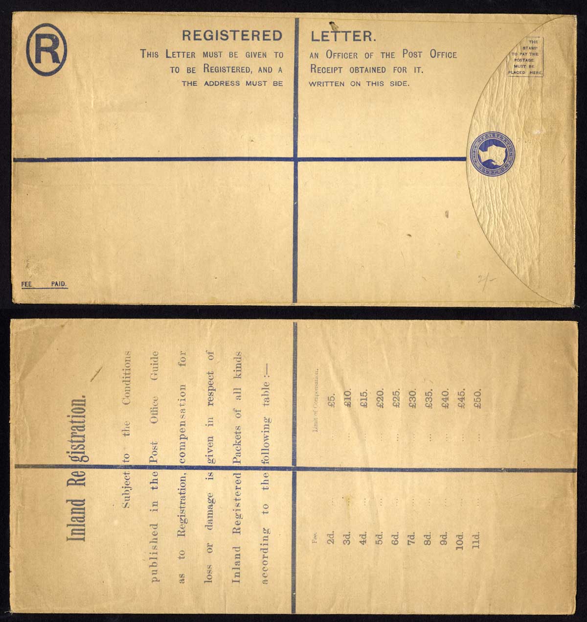 RP21 QV 2d Blue Registered Envelope size K Mint