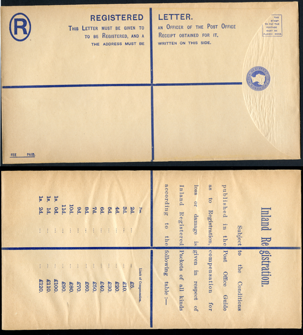 RP22 QV 2d Blue Registered Envelope size K Mint