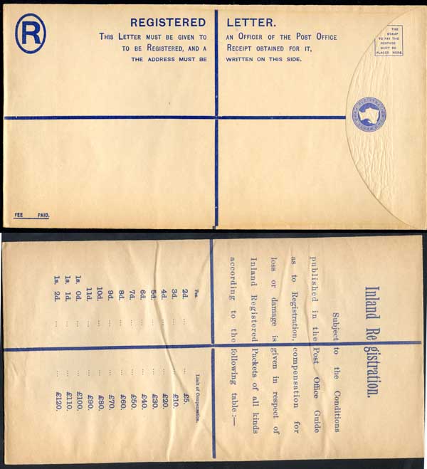 RP22 QV 2d Blue Registered Envelope size K Mint
