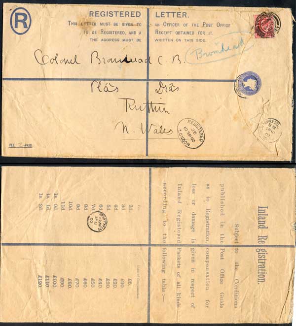 RP22 QV 2d Blue Registered Envelope size K Uprated