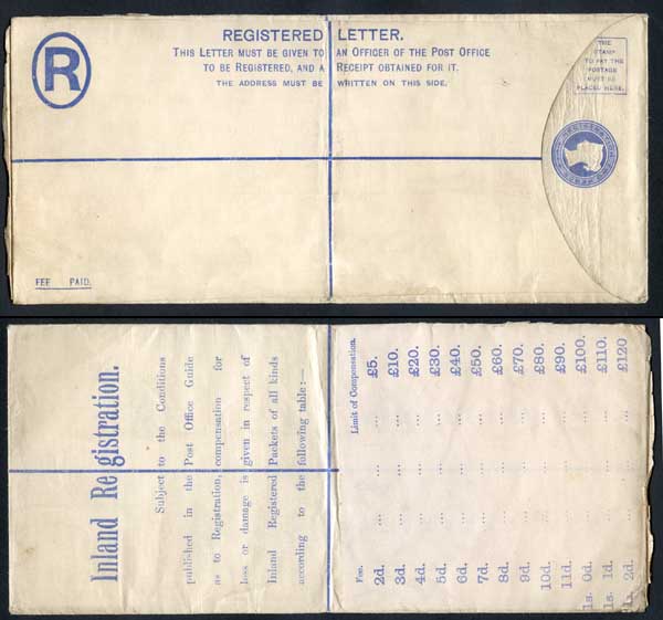 RP23 QV 2d Blue Registered Envelope Size H2 MINT