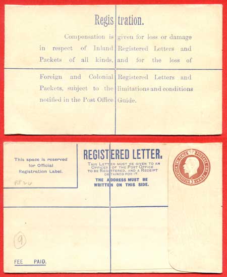 RP27b KGV 3d Registered Envelope W Below Neck Size F Imprint DE under Flap