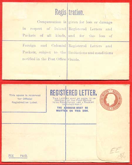 RP27b KGV 3d Registered Envelope W Below Neck Size F Imprint EE under Flap