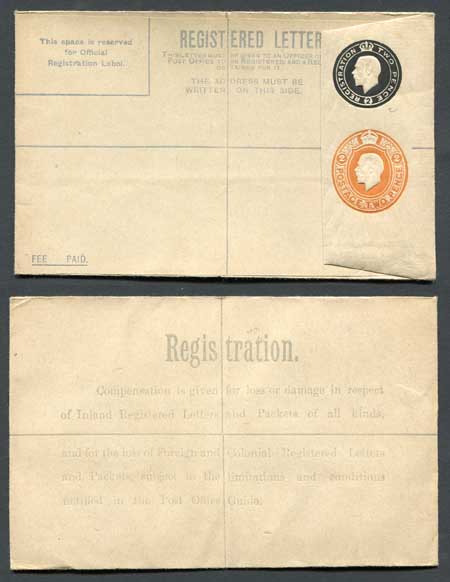 RP31b KGV 2d Black and 2d Orange Compound Registered Envelope Flap Type 7 Mint