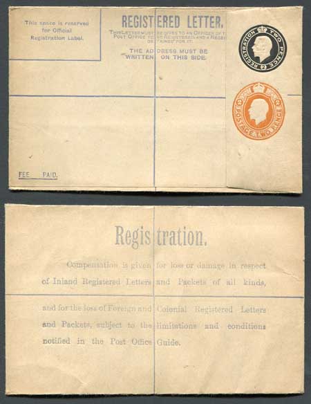 RP31b KGV 2d Black and 2d Orange Compound Registered Envelope Flap Type 7 Mint