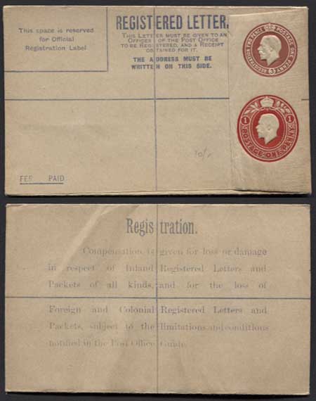 RP32 KGV 3d and 1d Registered Envelope size F Mint